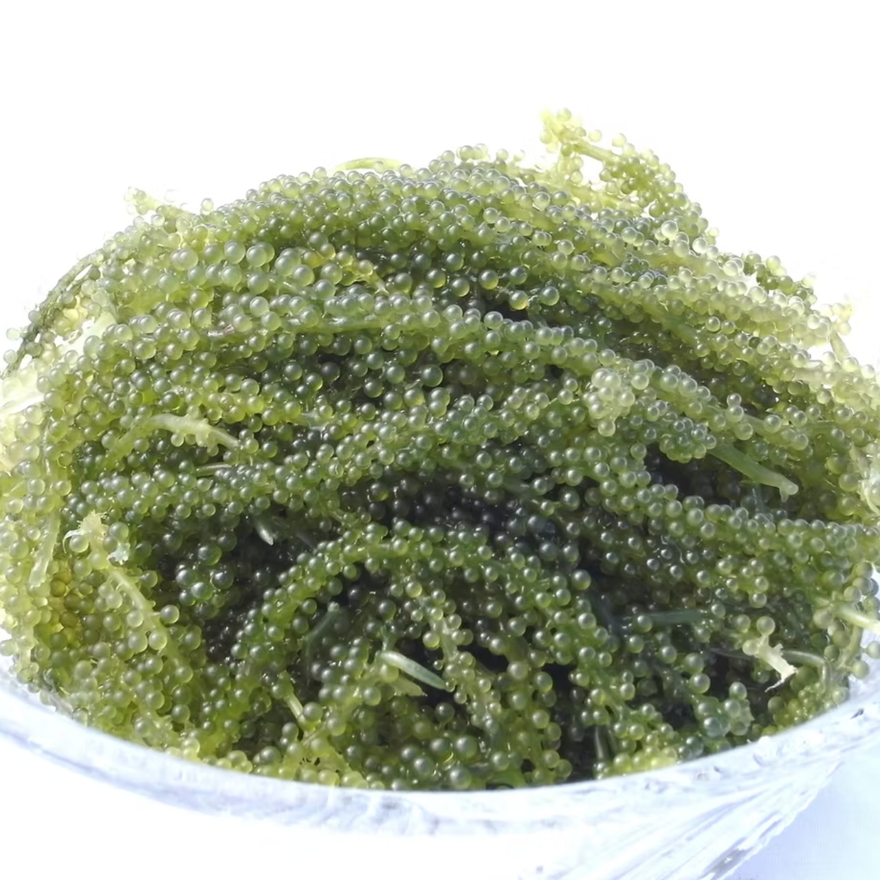 「沖縄の海からの贈り物、ぷちぷちとした食感が楽しめる海ぶどう。新鮮な海の香りと独特の旨味が広がります。健康志向の方にぴったりのスーパーフードを、ぜひ一度お試しください。」