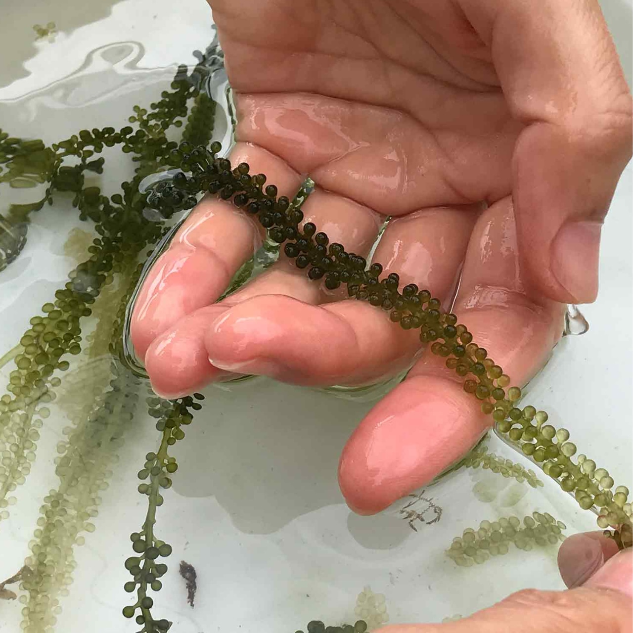 「沖縄の海からの贈り物、ぷちぷちとした食感が楽しめる海ぶどう。新鮮な海の香りと独特の旨味が広がります。健康志向の方にぴったりのスーパーフードを、ぜひ一度お試しください。」